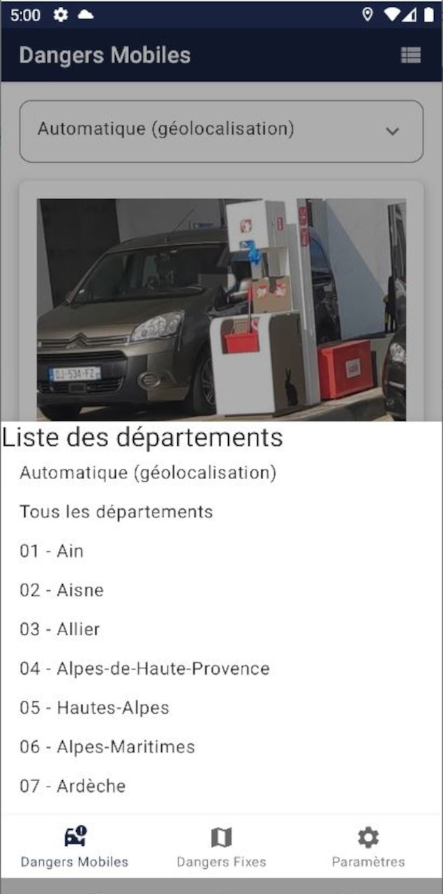 Une application qui permet de connaitre les radars mobiles mobiles d’une région ainsi que les emplacements connus pour les radars fixes et mobiles.
