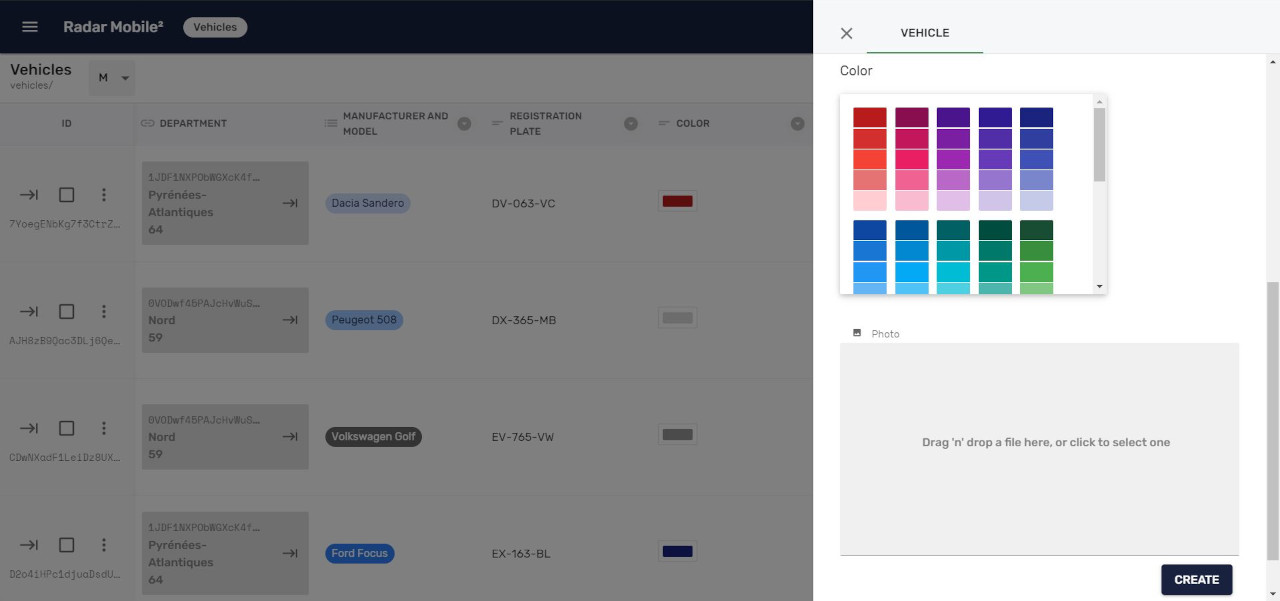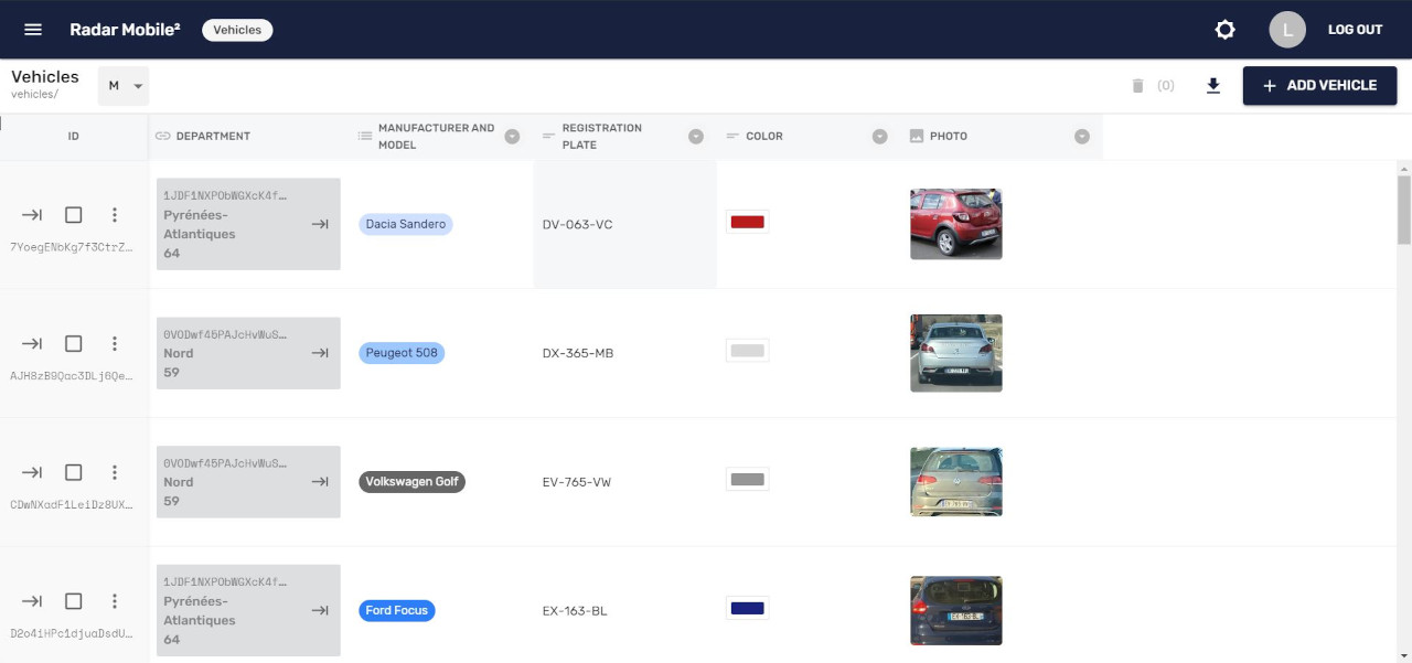 - administration des radars mobiles mobiles sous la forme d’une liste ;