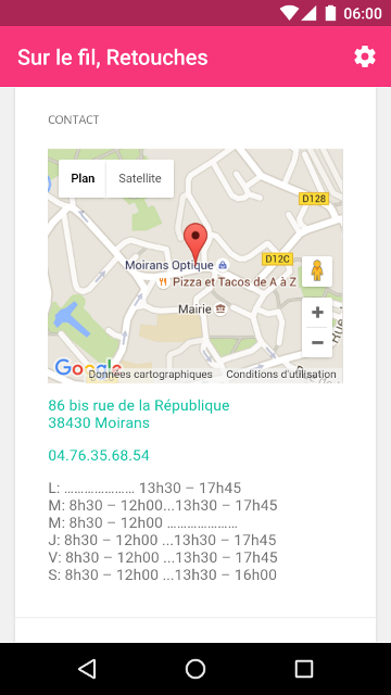 Cette application permet à l’utilisateur d’accéder à toutes les informations pratiques de la boutique :